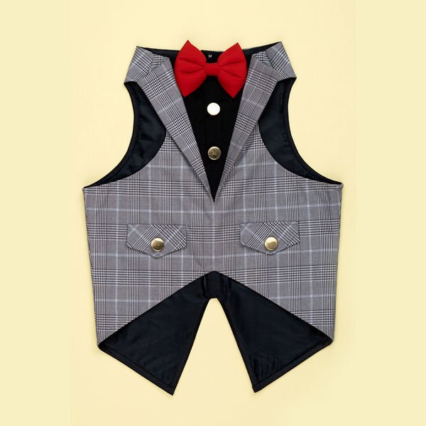 Dogobow Checked Tuxedo for Dogs (Grey) (Get a Bow Free)