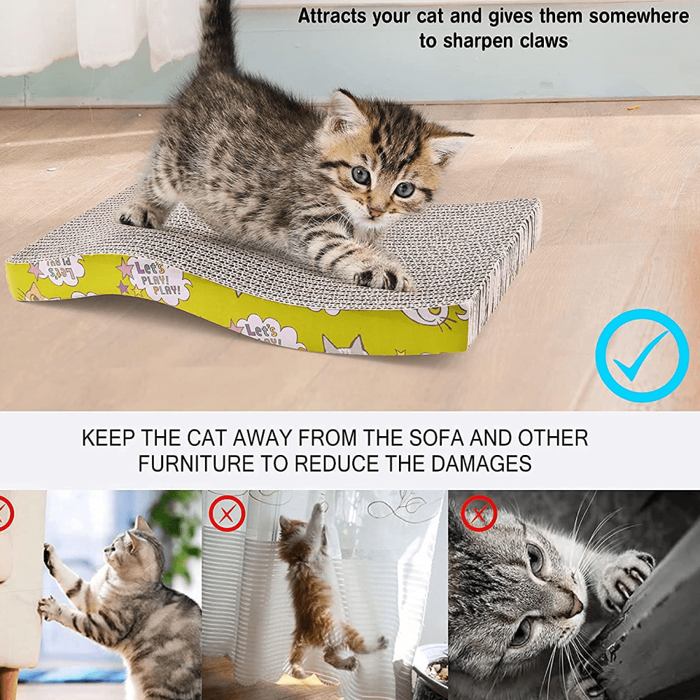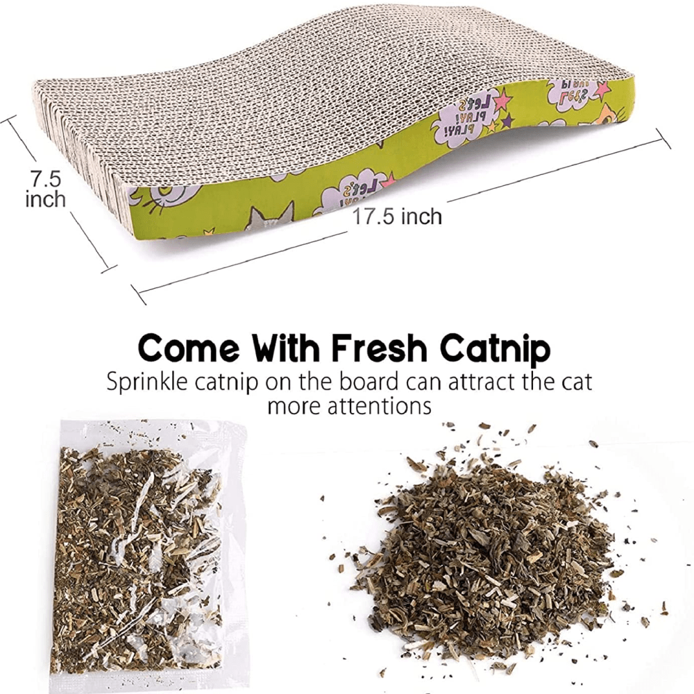 Your kitties and cats just love to have a real good scratch. Whether its your carpets, sofas or dining room chairs, cats are not so fussed where they put those claws. Its time to re- channel that natural instinct into a place that wont and ruin your best furniture. This curved scratch board can be placed next to your cats favorite scratching spots. To encourage your cat to start using the board you can sprinkle a small amount of catnip over the surface. We have sungrow catnip spray and sungrow catnip chew mice which you can spray or lay on the scratcher bed respectively. It might be worth investing in more than one scratch toy, to place in multiple locations. This will be especially beneficial if you own more than one cat. Scratching and clawing is a huge part of feline behavior, whether they are tense, happy, excited or frustrated, your cats can release their built up emotions or stress by using this toy. Cats will not only enthusiastically claw this corrugated paper scratch toy, they will also love to lounge about on the wide, comfy surface Key Features: ECO-FRIENDLY MATERIAL: 100% recycled corrugated cardboard and non-toxic glue are used to ensure there is no harmful material for your lovely cat REVERSIBLE USE:The cat scratch pad is made of double-sided scrapers, higher density hardened corrugated cardboard. Therefore more durable than ordinary products. The reversible feature makes the scratching life longer than most other products. FURNITURE PROTECTION:Satisfy the scratching instinct of cats by grinding their claws to their heart’s content on the board, keeping them away from sofas and other furniture. UNIQUE DESIGN: With its wavy design, the cat scratching board maximizes the tightening of shoulder and back muscles while enhancing your cat’s scratching pleasure. INCLUDES CATNIP: Cat scratching board includes 2 pack option available for better value with organic catnip to help boost your furry companion’s interest and keep them happy.