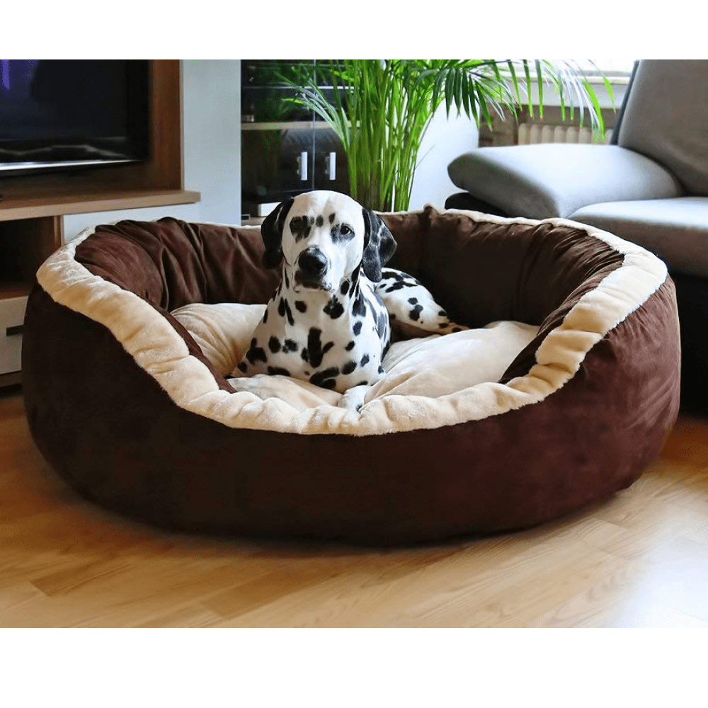 Fluffys Luxurious Polyester Filled Soft Dual Colour Bed For Pets Brown