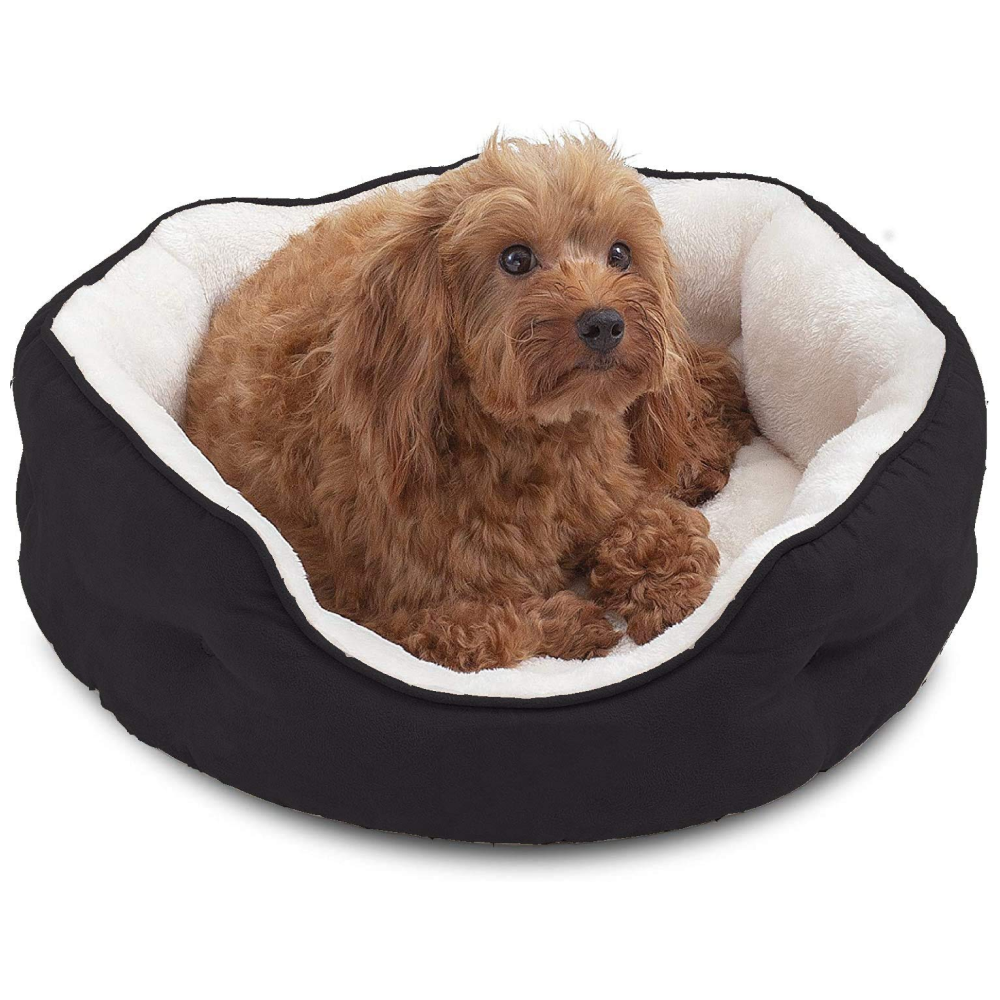 Fluffy’s Pawsome Round Washable Bed for Dogs and Cats (Black)