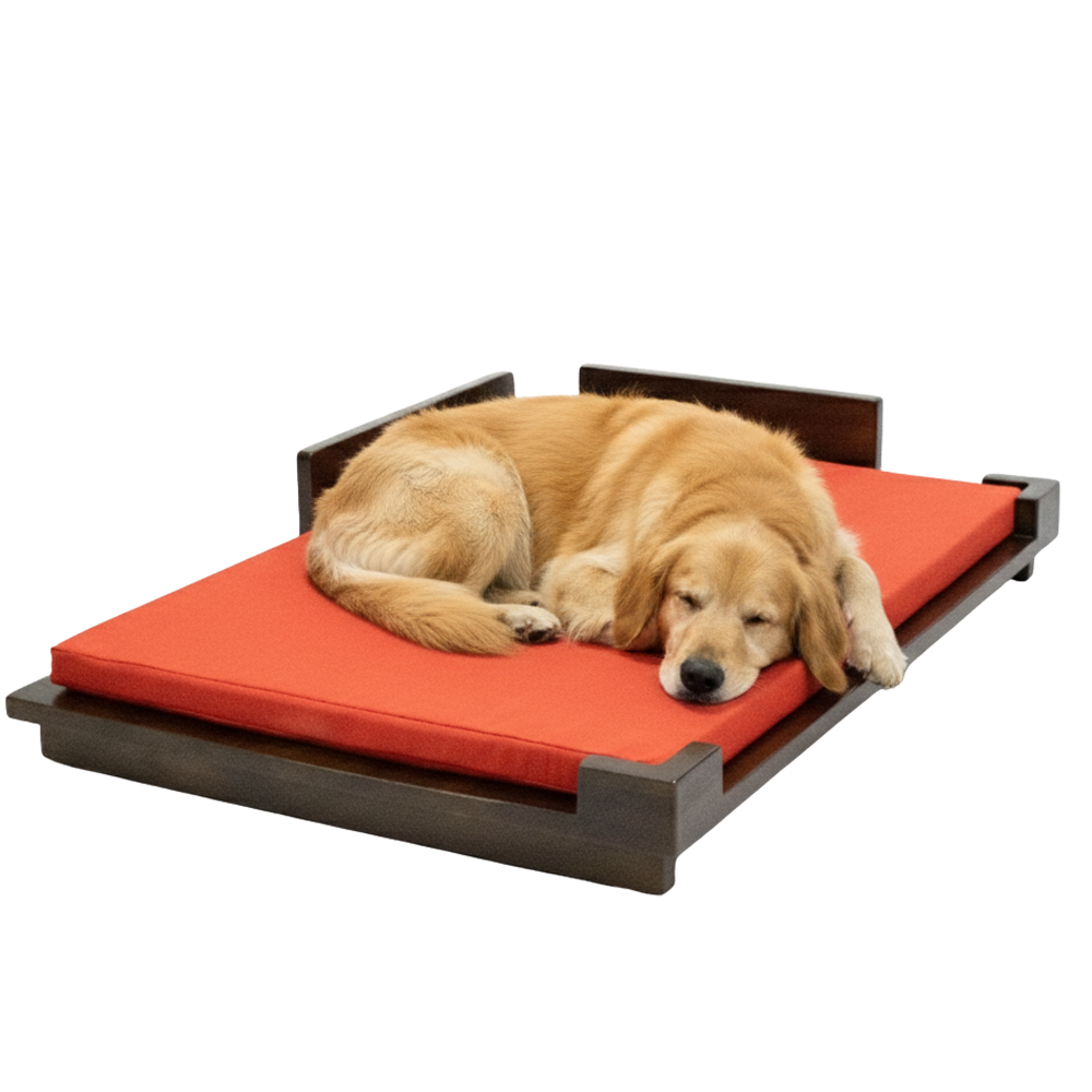 FurryLiving Barkly Barkly XL Solid Wood Dog Bed for Medium and Large Dogs (Dark Brown/Red)