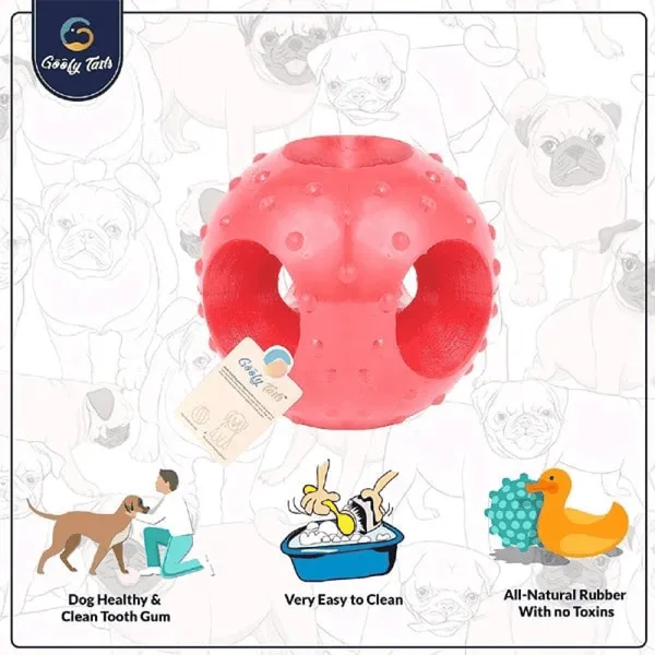 Dogs love to chew and bite anything that is chewable. This is very advisable to give your pet a chew able toy to make sure that they don’t chew your valuables like shoes, pillows, etc. which is not a healthy sign. That is why Goofy Tails has brought Flavored Rubber Chew Ball & Paw Print Rubber Bone in one pack.