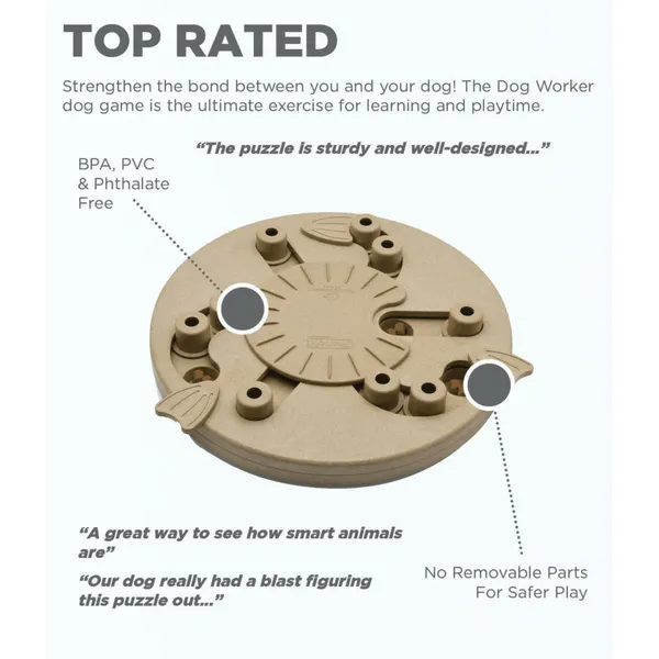 NO REMOVABLE PARTS: The Dog Worker dog puzzle is durably designed with built-in play pieces that don’t come out when your dog plays.