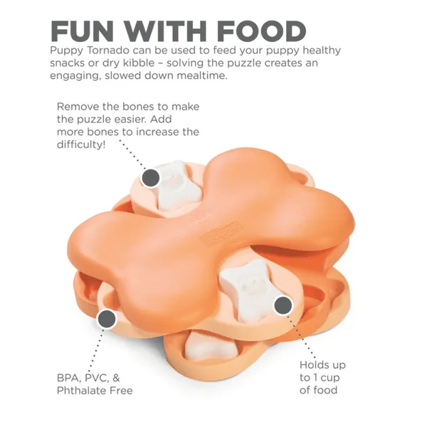 Constructed from tough, pet-safe materials, the Puppy Tornado is both durable and easy to clean. Each compartment has been thoughtfully crafted to ensure your dog feels rewarded with every interaction. The non-slip base keeps the toy in place while your dog works their way through uncovering all the hidden treats. Its sturdy build ensures it can withstand energetic play, making it a reliable addition to your dog’s toy collection.Intelligently Designed to Promote Mental Stimulation