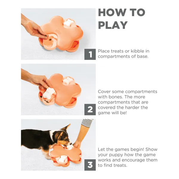 - BOREDOM BUSTER: With 12 hidden compartments and 3 dog bone covers you can vary the difficulty level of this stimulating dog puzzle to keep your furry friend excited and satisfied!