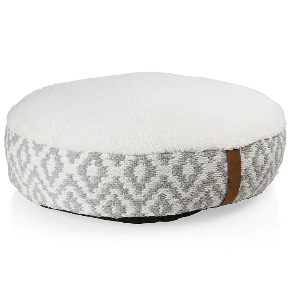 Pawpourri Bohemian Plush Round Bed for Dogs and Cats (Grey/White)