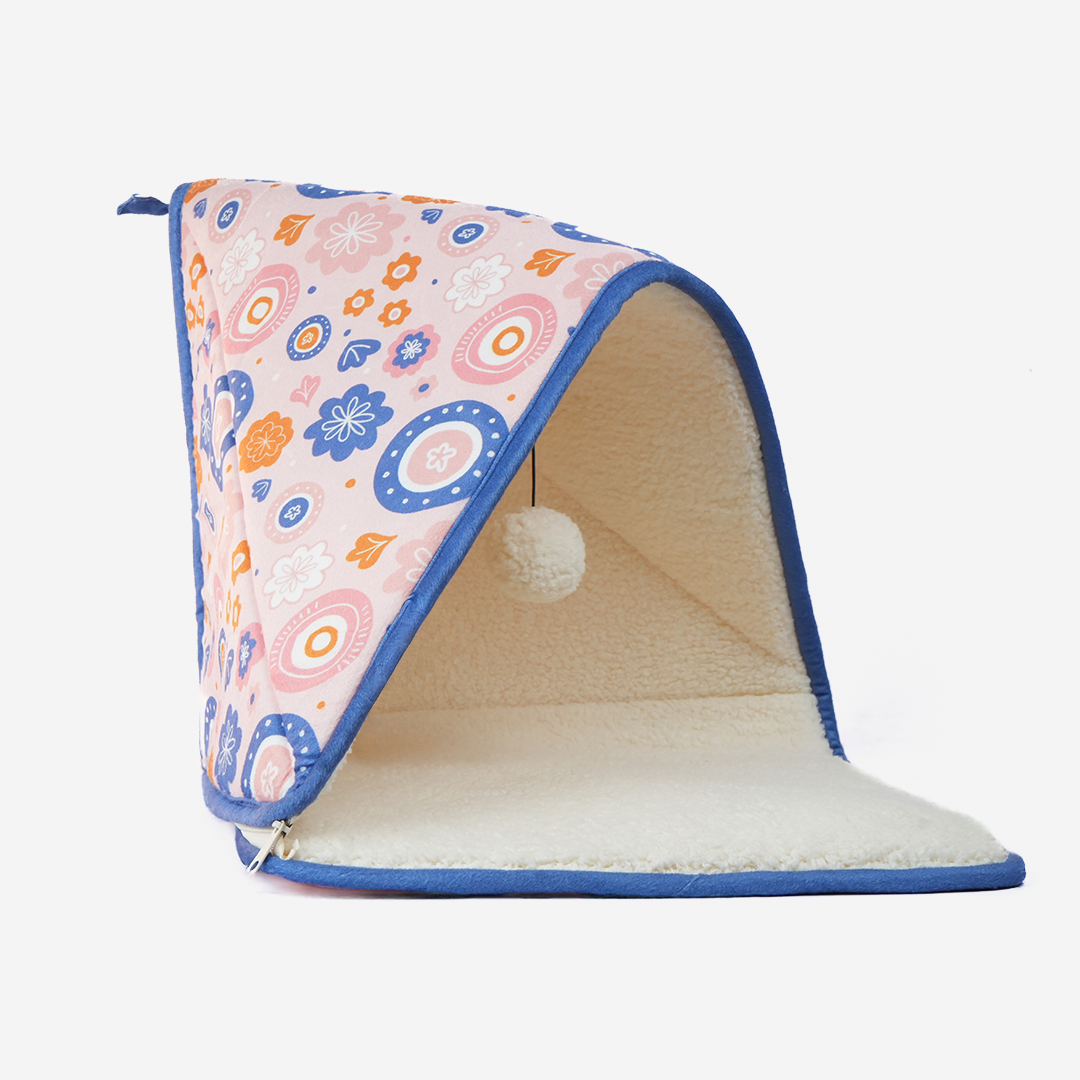 The Cozy Tent for Cats, Kittens and Small Dogs (Pink and Blue) is where comfort meets convenience. Designed with a plush, cozy interior and a playful pompom toy, this tent offers your pet a peaceful nook to nap, play, or hide. Featuring a smart zip closure and a foldable design, it’s easy to assemble, store, and carry — perfect for modern pet parents who love fuss-free comfort. Key Features: Zip-Up Design: Easy to assemble and dismantle with a convenient zipper closure. Foldable & Portable: Collapses flat for quick storage or travel. Soft & Plush: Cozy fabric keeps your pet warm and relaxed through every season. Pompom Play: Built-in toy keeps your furry friend entertained inside their tent. Charming Print: Adorable pink-and-blue floral pattern brightens up any room. Easy to Clean: Removable cushion and washable fabric for effortless upkeep. Size: 40x40cm .tg {border-collapse:collapse;border-spacing:0;} .tg td{border-color:black;border-style:solid;border-width:1px;font-family:Arial, sans-serif;font-size:14px; overflow:hidden;padding:10px 5px;word-break:normal;} .tg th{border-color:black;border-style:solid;border-width:1px;font-family:Arial, sans-serif;font-size:14px; font-weight:normal;overflow:hidden;padding:10px 5px;word-break:normal;} .tg .tg-baqh{text-align:center;vertical-align:top} .tg .tg-amwm{font-weight:bold;text-align:center;vertical-align:top}
