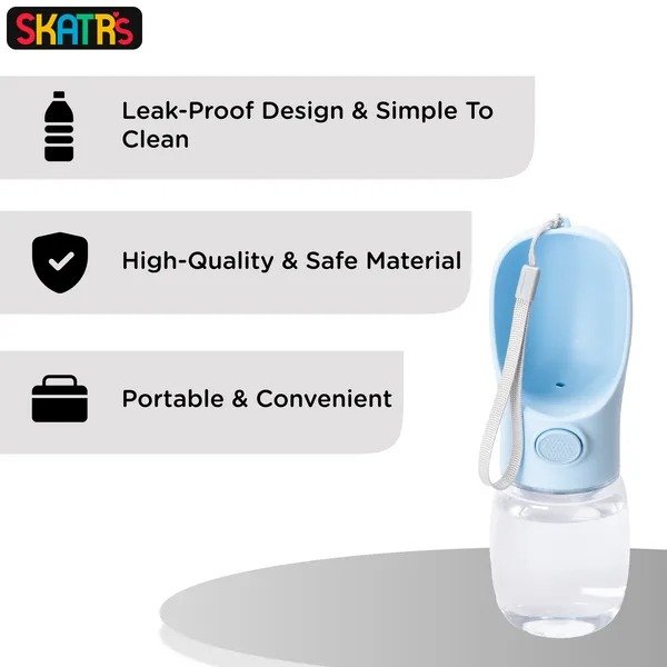 Introducing SKATRS Water Bottle for dogs and cats :Keep your furry friends hydrated on the go with the SKATRS Water Bottle, the ultimate hydration solution for pets. Designed with both convenience and comfort in mind, this innovative water bottle makes it easy to ensure your dog or cat has access to fresh water.